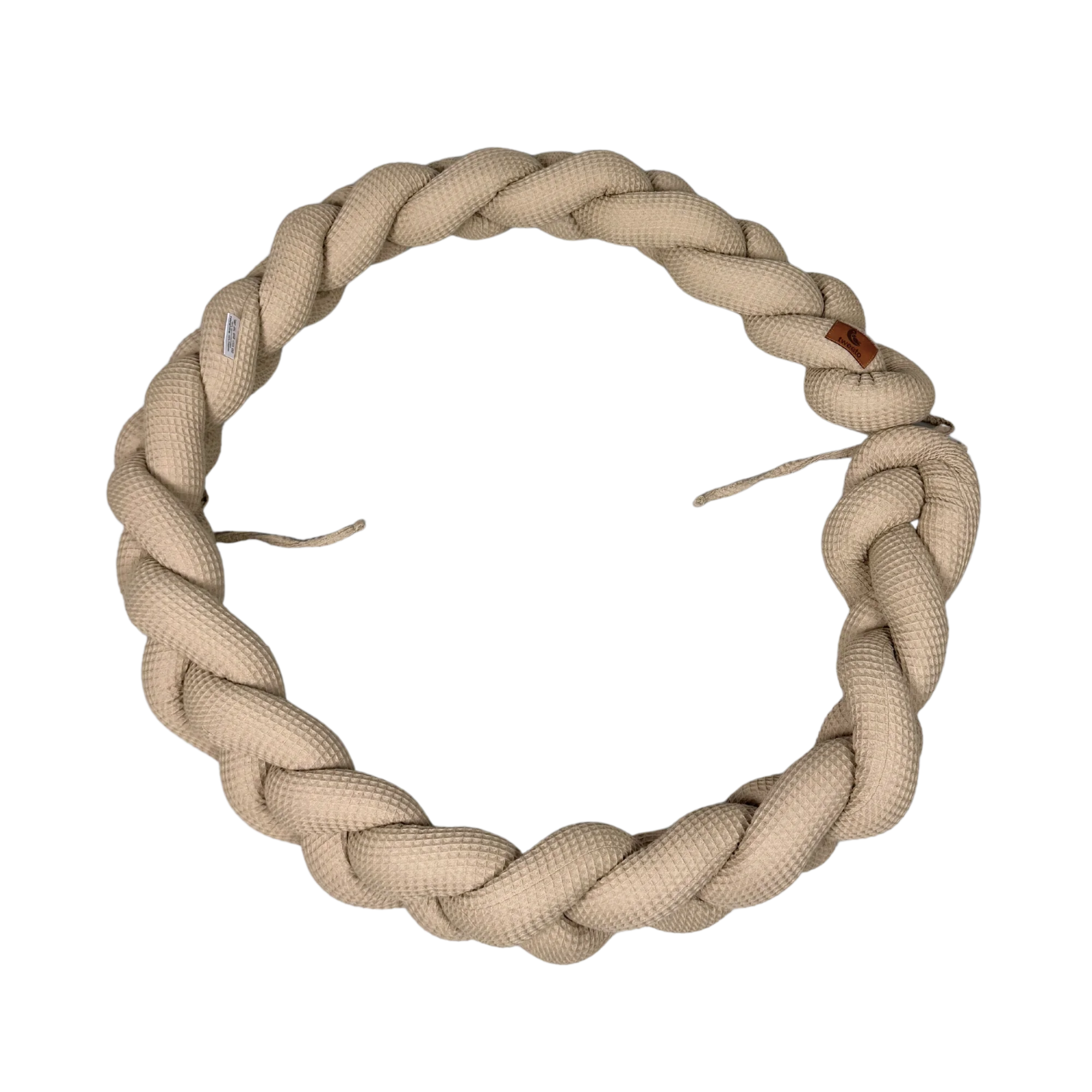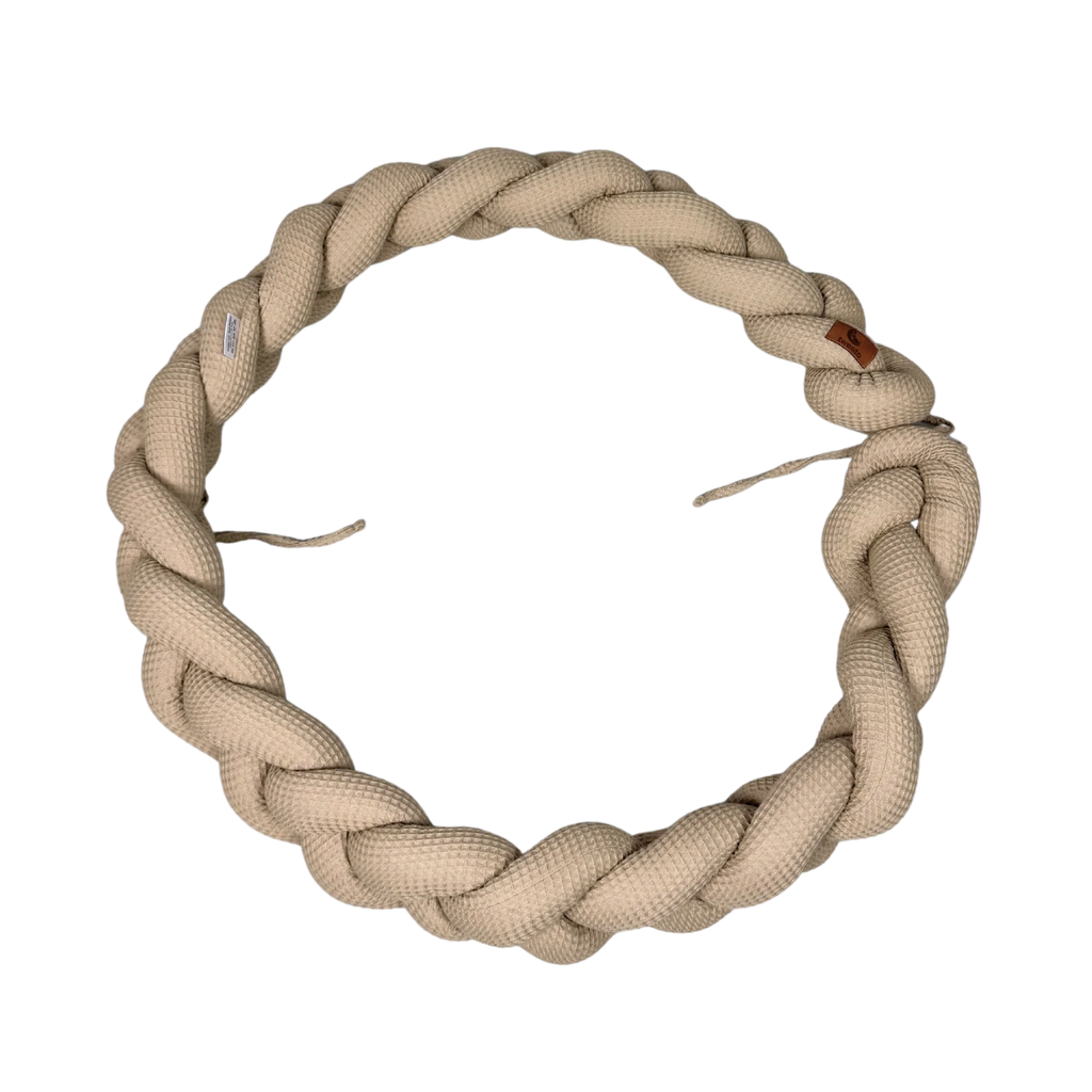 Die geflochtene Bettschlange aus Waffelpique Stoff, ist der Blickfang in jedem Kinderzimmer. Die Bettrolle bietet deinem Kind Geborgenheit und ein Gefühl von Sicherheit.